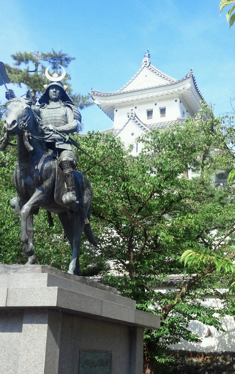 戸田氏鉄の銅像があって、バックがお城の良いアングルでした。